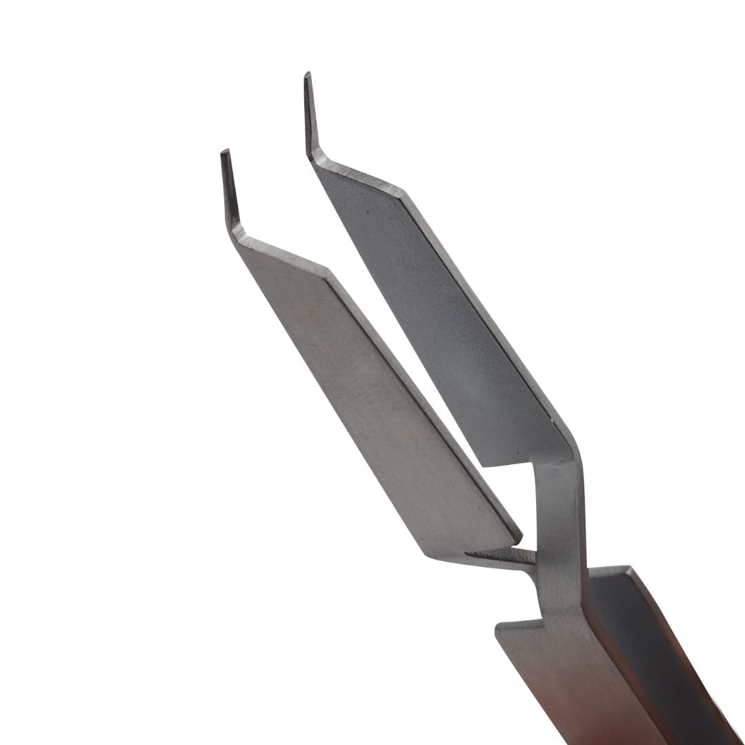 La pinza porta tubo Orthoclassic tiene una punta delgada que ajusta entre las aletas y la base del bracket. Asiste al posicionamiento al unir tubos molares y accesorios en lugares difíciles de alcanzar, posterior o lingual.